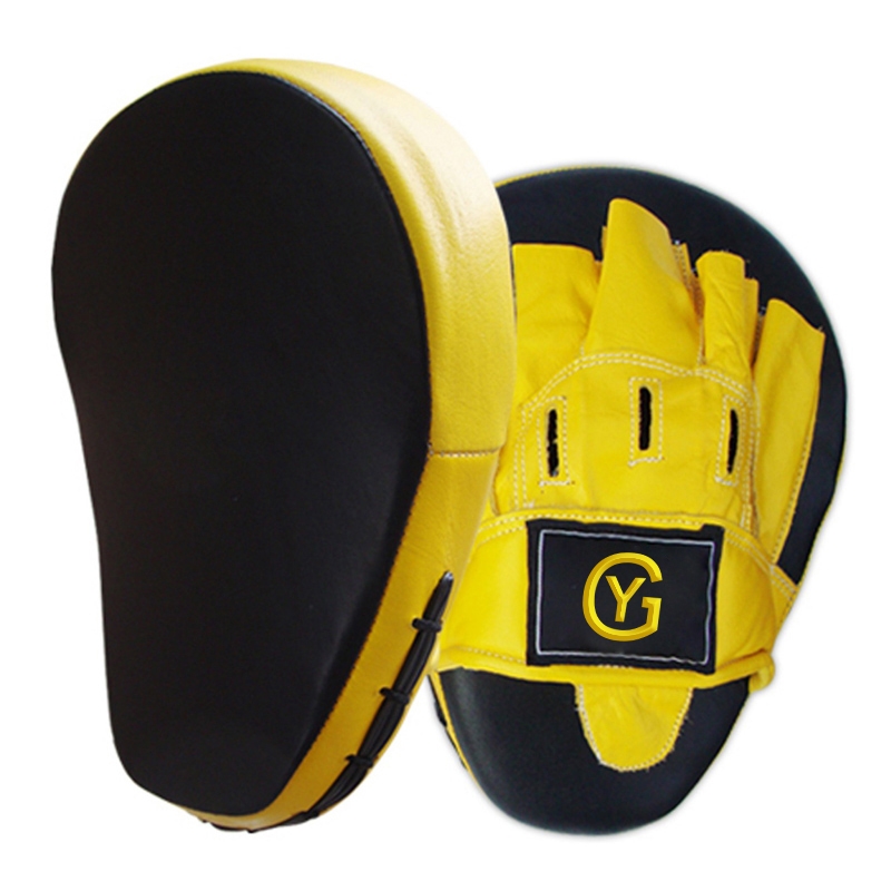 Premium Quality Synthetic leather .The ideal anatomically correct focus mitts that are advantageous for the trainer and athlete. Specially padded back hand, wrist and forearm cover offers trainers a bevy of training options and protection. Complete with rounded inside palm grip, moisture wicking inside liner and added wrist padding. . More than 2 of multi-layered shock absorbing foams for professional results. Mesh back ensures breathability and comfort  product